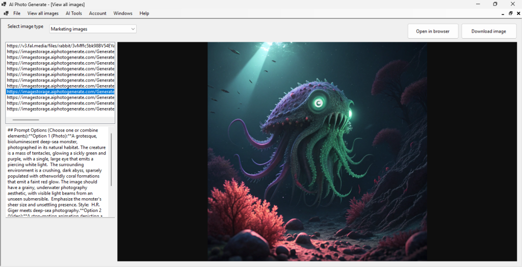 AI photo generate is a Windows desktop application that generates different types of AI assets.